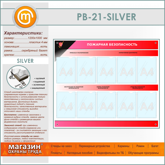 Стенд «Пожарная безопасность» с 10 карманами (PB-21-SILVER) в Ижевске купить