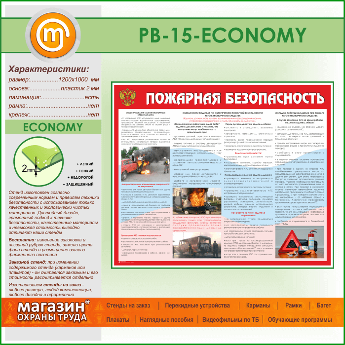 Стенд «Пожарная безопасность на автотранспорте» (PB-15-ECONOMY) в Ижевске купить