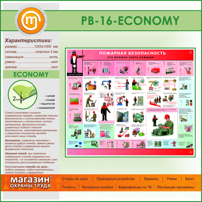 Стенд «Пожарная безопасность. Это должен знать каждый» (PB-16-ECONOMY) в Ижевске купить