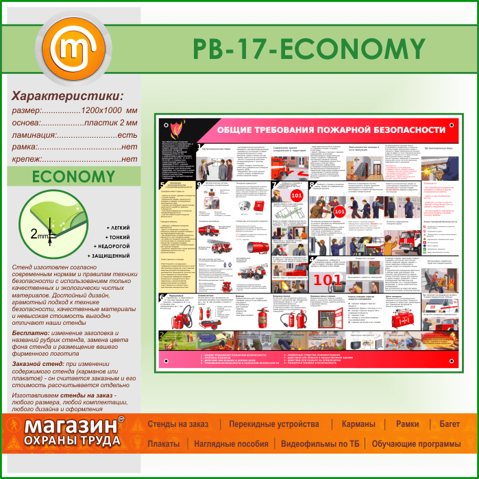 Стенд «Общие требования пожарной безопасности» (PB-17-ECONOMY) в Ижевске купить