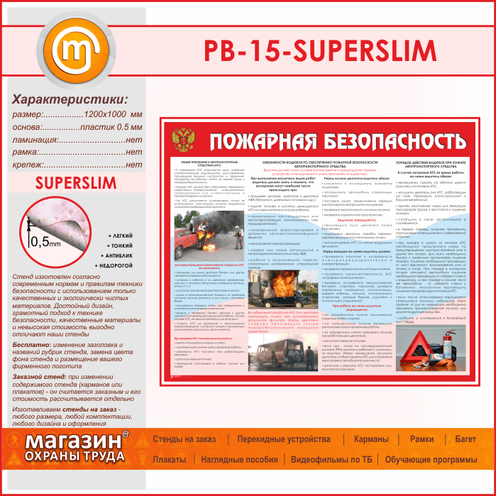 Стенд «Пожарная безопасность на автотранспорте» (PB-15-SUPERSLIM) в Ижевске купить