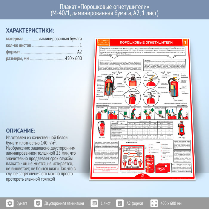Плакат «Порошковые огнетушители» (М-40/1, ламинированная бумага, А2, 1 лист) в Ижевске купить