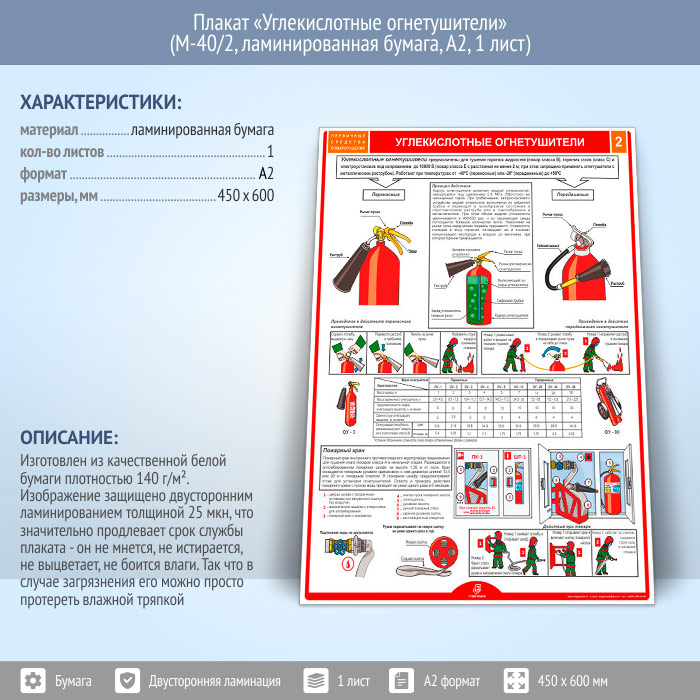 Плакат «Углекислотные огнетушители» (М-40/2, ламинированная бумага, А2, 1 лист) в Ижевске купить