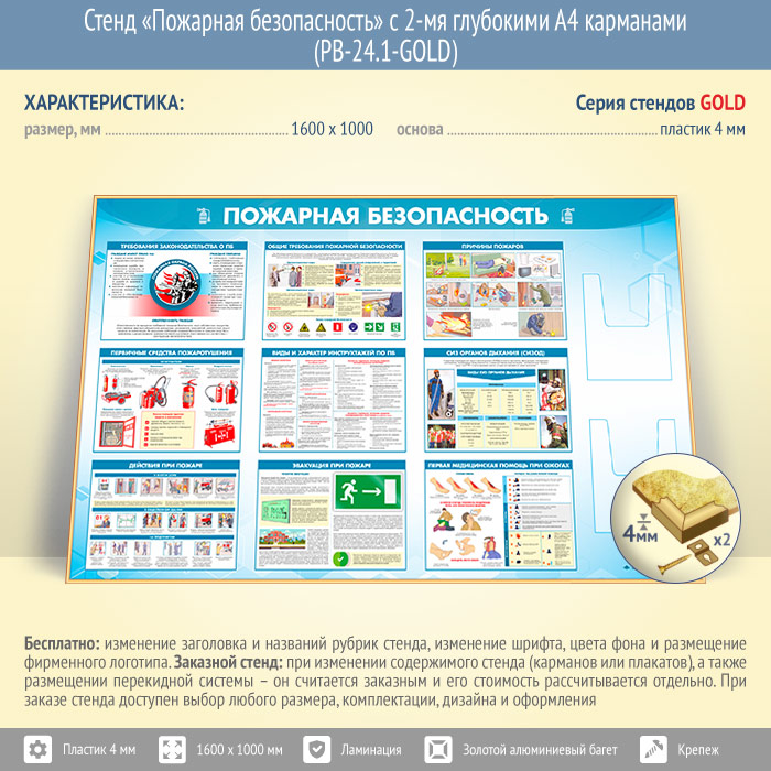 Стенд «Пожарная безопасность» с 2-мя глубокими А4 карманами (PB-24.1-GOLD) в Ижевске купить