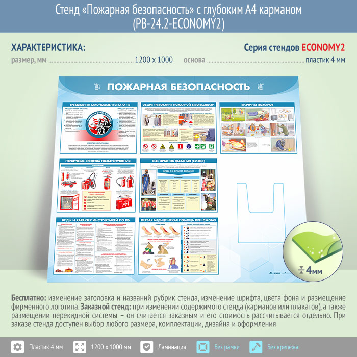 Стенд «Пожарная безопасность» с глубоким А4 карманом (PB-24.2-ECONOMY2) в Ижевске купить