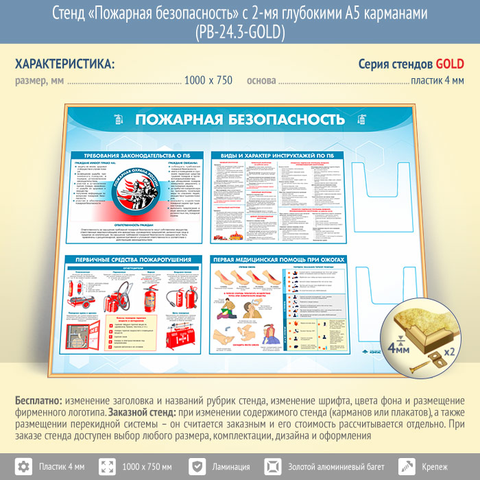 Стенд «Пожарная безопасность» с 2-мя глубокими А5 карманами (PB-24.3-GOLD) в Ижевске купить