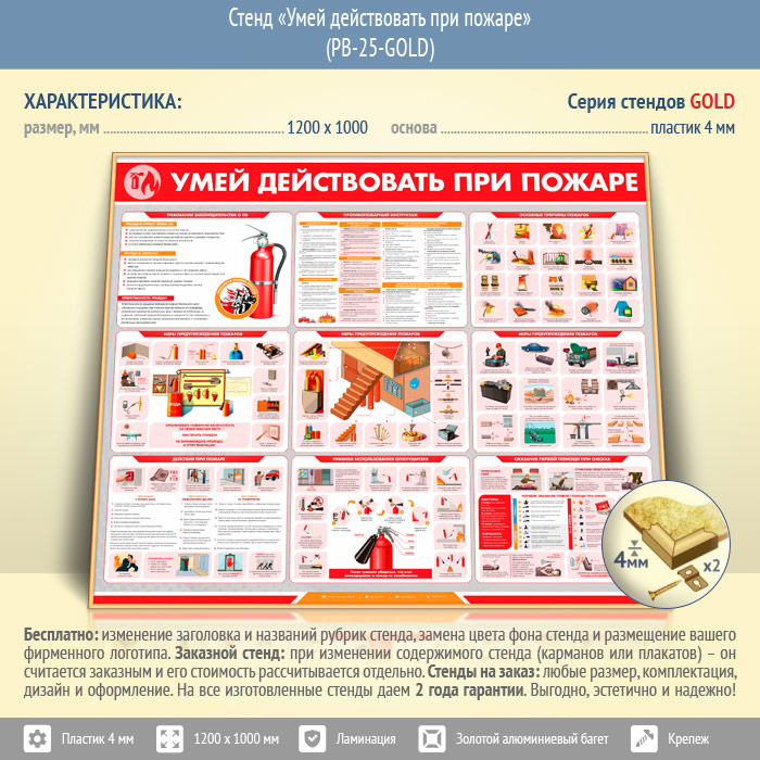Стенд «Умей действовать при пожаре» (PB-25-GOLD) в Ижевске купить