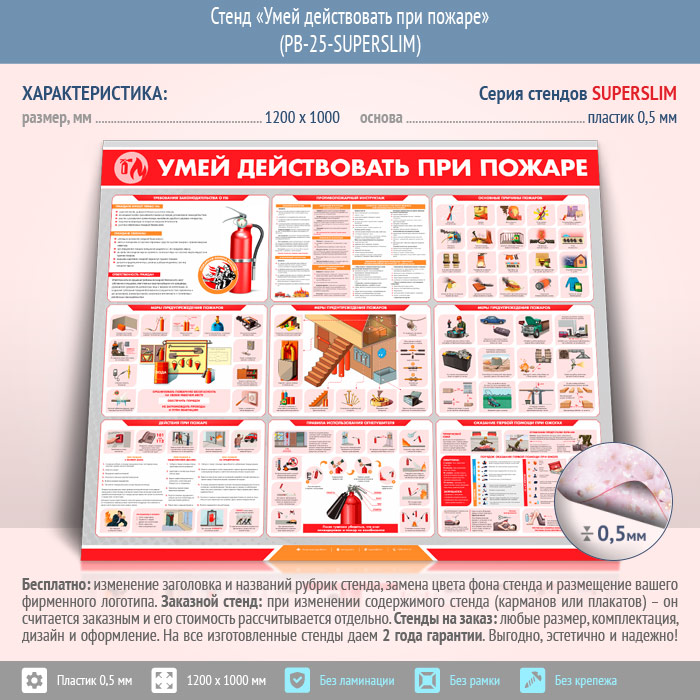Стенд «Умей действовать при пожаре» (PB-25-SUPERSLIM) в Ижевске купить