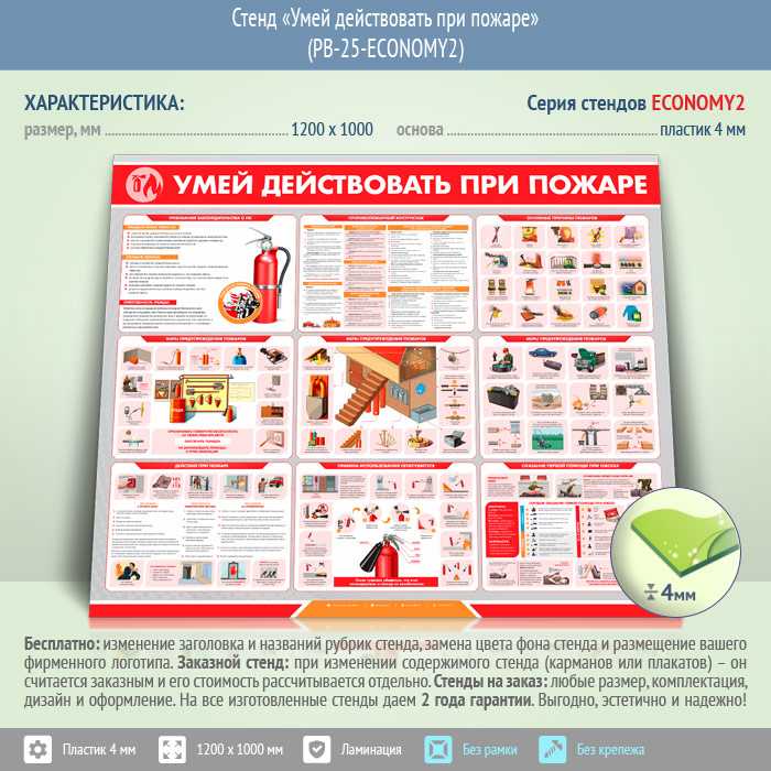 Стенд «Умей действовать при пожаре» (PB-25-ECONOMY2) в Ижевске купить