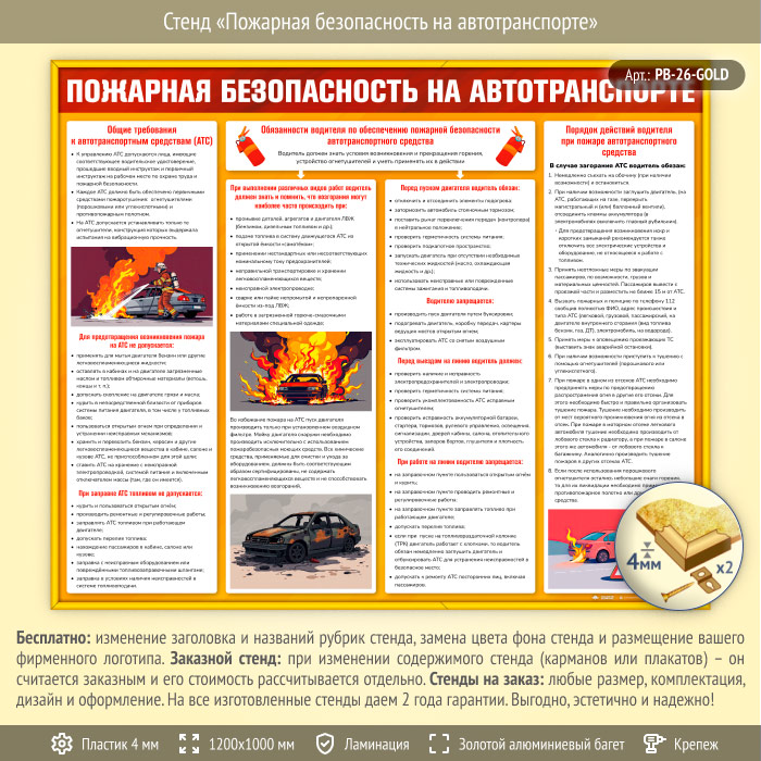 Стенд «Пожарная безопасность на автотранспорте» (PB-26-GOLD) в Ижевске купить