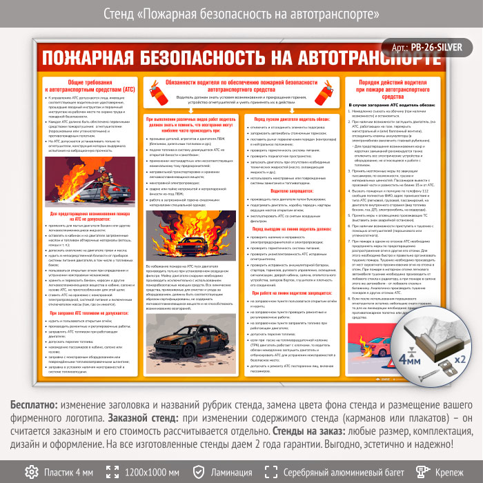 Стенд «Пожарная безопасность на автотранспорте» (PB-26-SILVER) в Ижевске купить