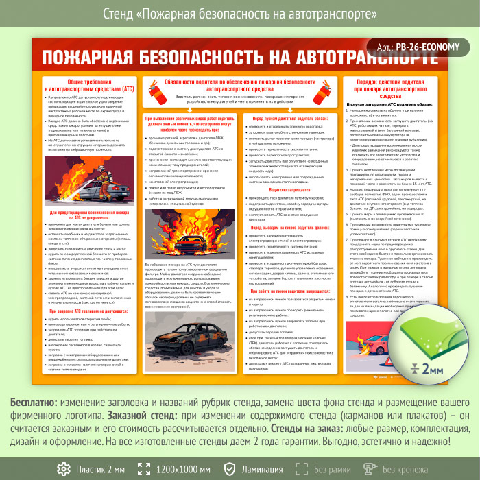Стенд «Пожарная безопасность на автотранспорте» (PB-26-ECONOMY) в Ижевске купить