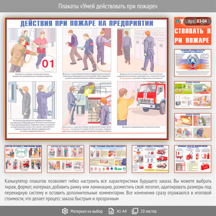 Плакаты «Умей действовать при пожаре» (ВЗ-04, 10 листов) в Ижевске купить