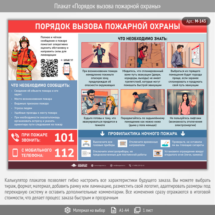 Плакат «Порядок вызова пожарной охраны» с QR (М-143, 1 лист) в Ижевске купить