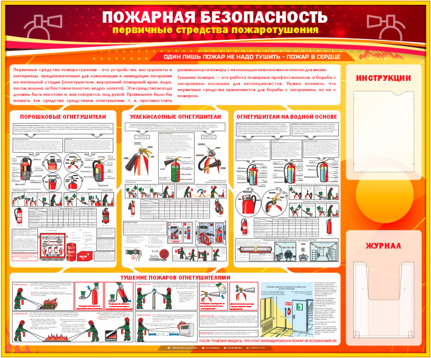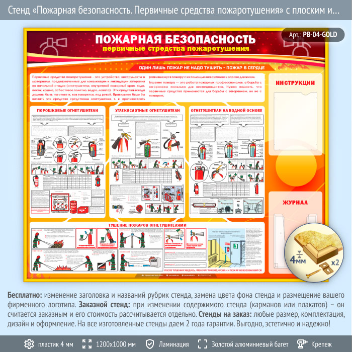 Стенд «Пожарная безопасность. Первичные средства пожаротушения» с плоским и объемным карманами (PB-04-GOLD) в Ижевске купить