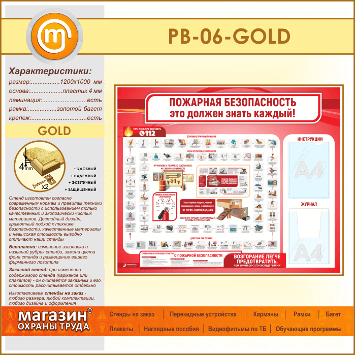 Стенд «Пожарная безопасность. Это должен знать каждый» с плоским и объемным карманами (PB-06-GOLD) в Ижевске купить