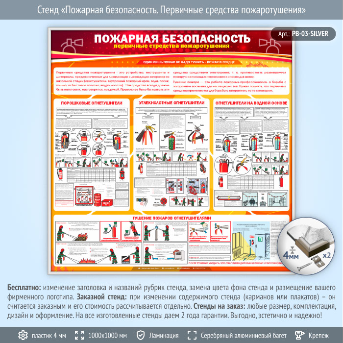 Стенд «Пожарная безопасность. Первичные средства пожаротушения» (PB-03-SILVER) в Ижевске купить