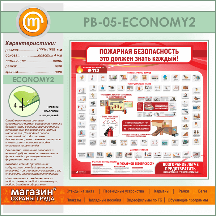 Стенд «Пожарная безопасность. Это должен знать каждый» (PB-05-ECONOMY2) в Ижевске купить