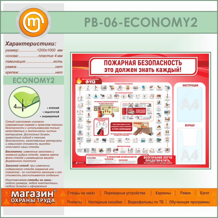 Стенд «Пожарная безопасность. Это должен знать каждый» с плоским и объемным карманами (PB-06-ECONOMY2) в Ижевске купить