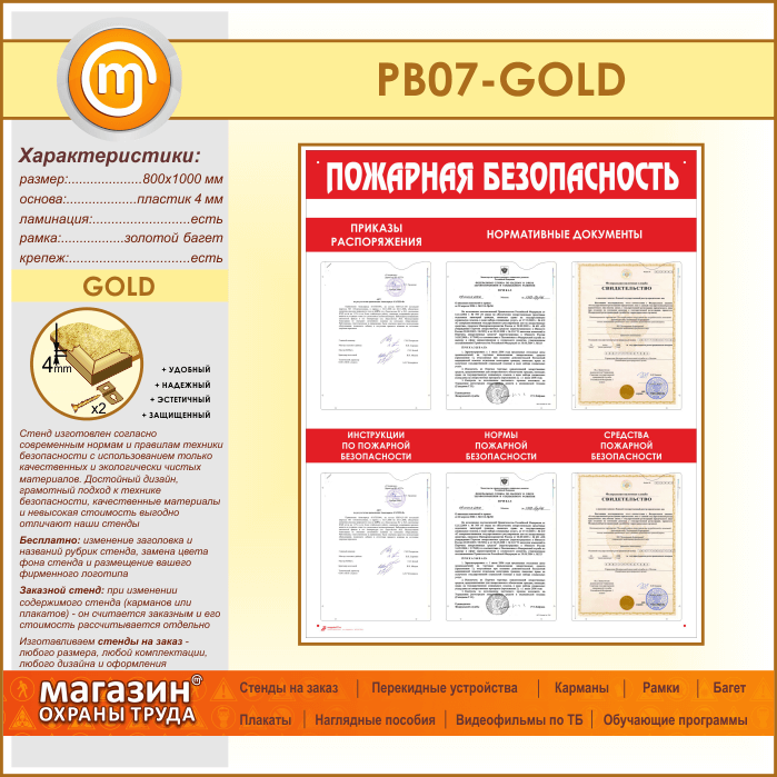 Стенд «Пожарная безопасность» с 6 карманами (PB-07-GOLD) в Ижевске купить