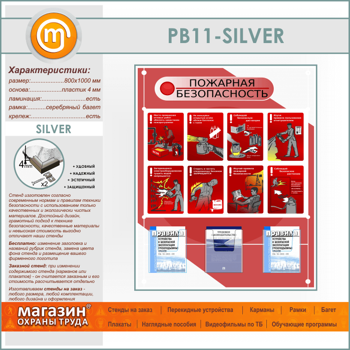 Стенд «Стенд пожарная безопасность в строительстве» с 3 объемными карманами (PB-11-SILVER) в Ижевске купить