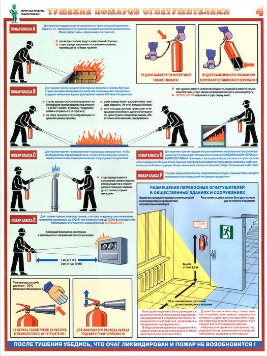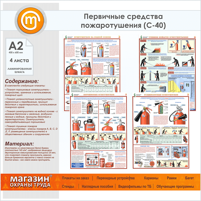Плакаты «Первичные средства пожаротушения» (С-40, ламинированная бумага, А2, 4 листа) в Ижевске купить