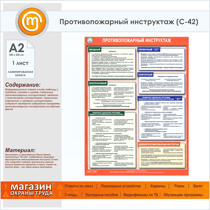 Плакат «Противопожарный инструктаж» (С-42, ламинированная бумага, А2, 1 лист) в Ижевске купить