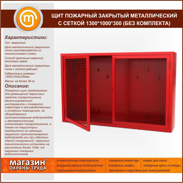 Щит пожарный закрытый металлический с сеткой 1300*1000*300 (без комплекта) в Ижевске купить
