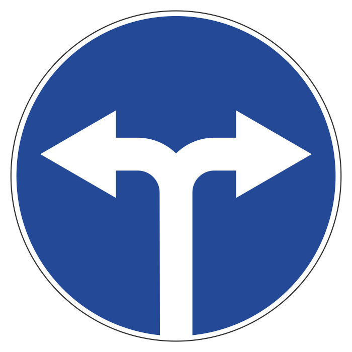 Дорожный знак 4.1.6 «Движение направо или налево» (металл 0,8 мм, II типоразмер: диаметр 700 мм, С/О пленка: тип Б высокоинтенсивная) в Ижевске купить