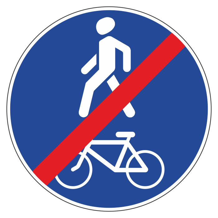 Дорожный знак 4.5.3 «Конец пешеходной и велосипедной дорожки с совмещенным движением» (металл 0,8 мм, II типоразмер: диаметр 700 мм, С/О пленка: тип В алмазная) в Ижевске купить