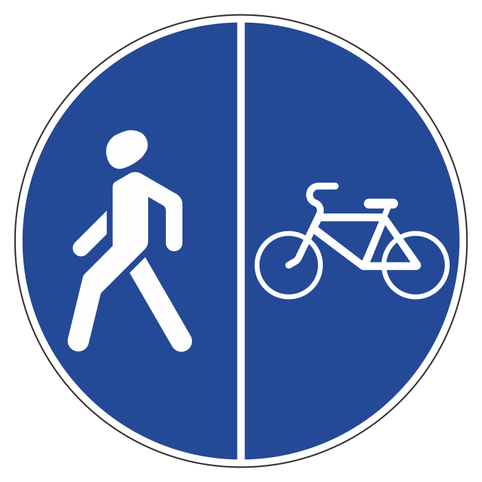 Дорожный знак 4.5.5 «Пешеходная и велосипедная дорожка с разделением движения» (металл 0,8 мм, II типоразмер: диаметр 700 мм, С/О пленка: тип В алмазная) в Ижевске купить