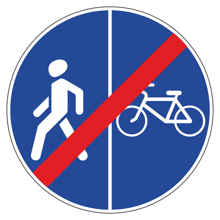 Дорожный знак 4.5.7 «Конец пешеходной и велосипедной дорожки с разделением движения» (металл 0,8 мм, II типоразмер: диаметр 700 мм, С/О пленка: тип А инженерная) в Ижевске купить