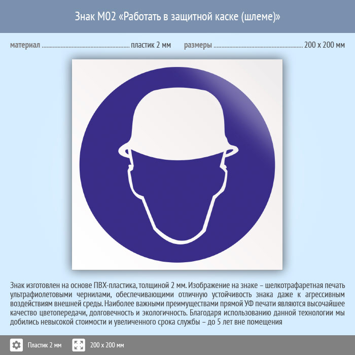 Знак M02 «Работать в защитной каске (шлеме)» (пластик, 200х200 мм) в Ижевске купить