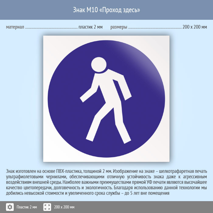 Знак M10 «Проход здесь» (пластик, 200х200 мм) в Ижевске купить
