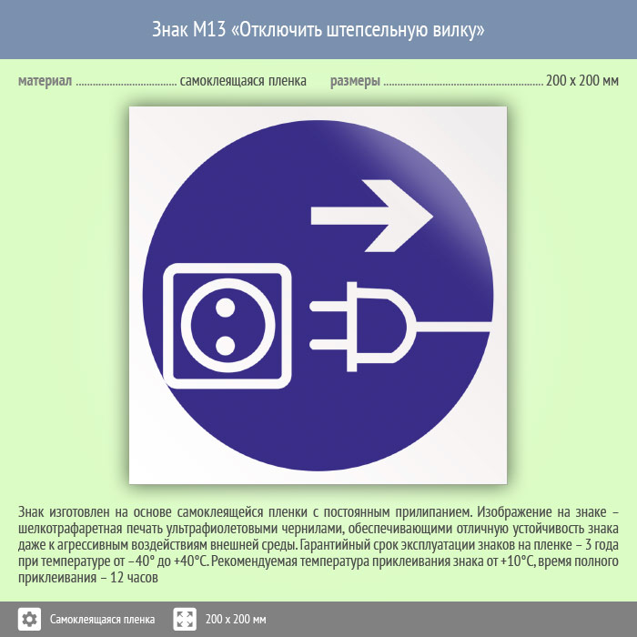 Знак M13 «Отключить штепсельную вилку» (пленка, 200х200 мм) в Ижевске купить