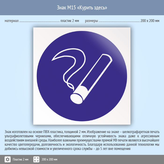 Знак M15 «Курить здесь» (исключен) (пластик, 200х200 мм) в Ижевске купить