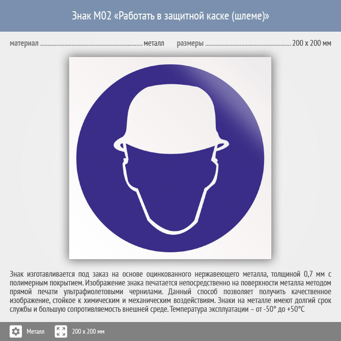 Знак M02 «Работать в защитной каске (шлеме)» (металл, 200х200 мм) в Ижевске купить