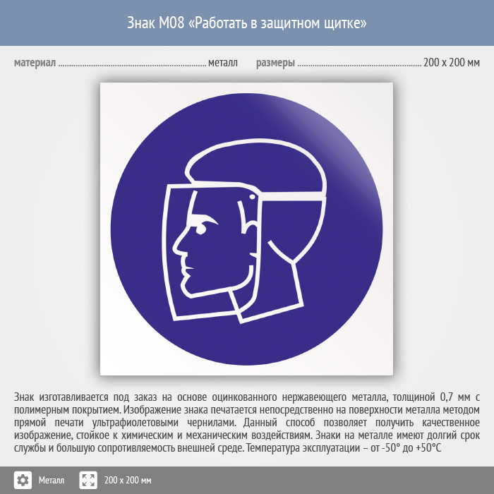 Знак M08 «Работать в защитном щитке» (металл, 200х200 мм) в Ижевске купить