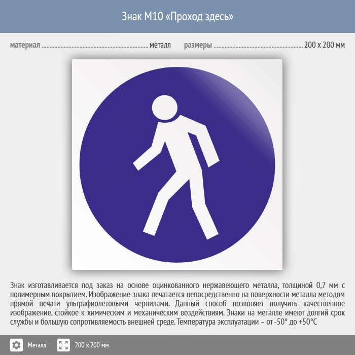 Знак M10 «Проход здесь» (металл, 200х200 мм) в Ижевске купить