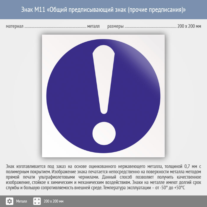 Знак M11 «Общий предписывающий знак (прочие предписания)» (металл, 200х200 мм) в Ижевске купить