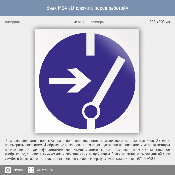 Знак M14 «Отключить перед работой» (металл, 200х200 мм) в Ижевске купить