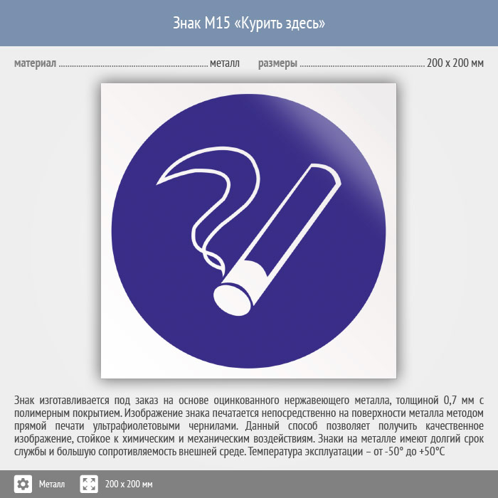 Знак M15 «Курить здесь» (исключен) (металл, 200х200 мм) в Ижевске купить
