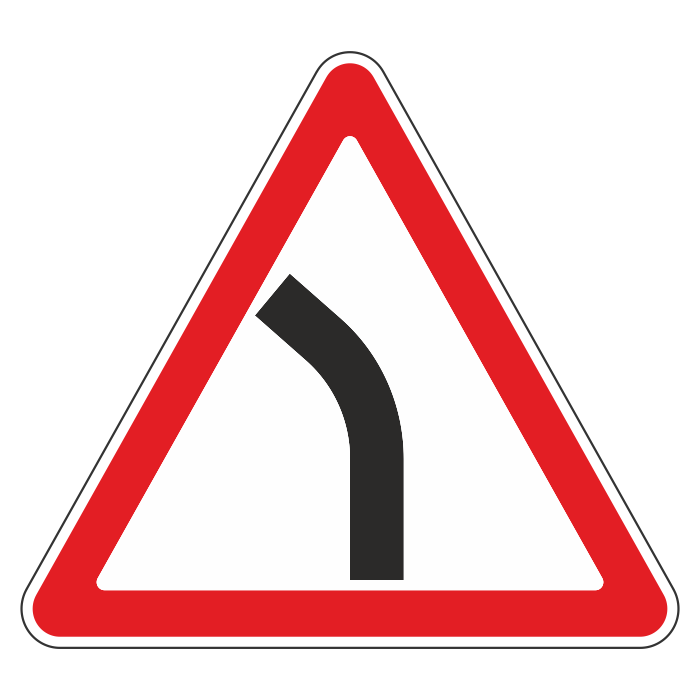 Дорожный знак 1.11.2 «Опасный поворот налево» (металл 0,8 мм, II типоразмер: сторона 900 мм, С/О пленка: тип Б высокоинтенсивная) в Ижевске купить