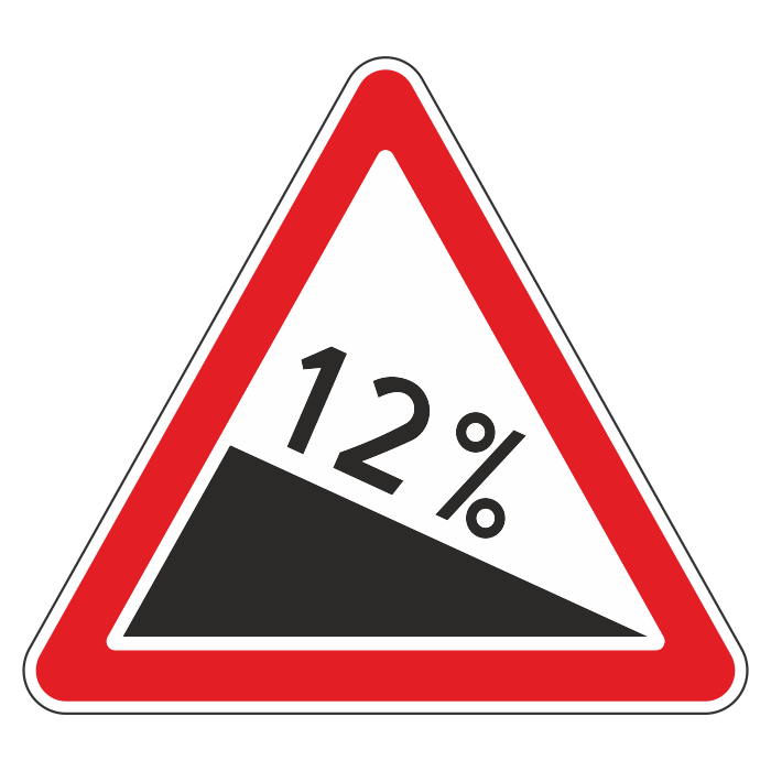 Дорожный знак 1.13 «Крутой спуск» (металл 0,8 мм, III типоразмер: сторона 1200 мм, С/О пленка: тип Б высокоинтенсивная) в Ижевске купить