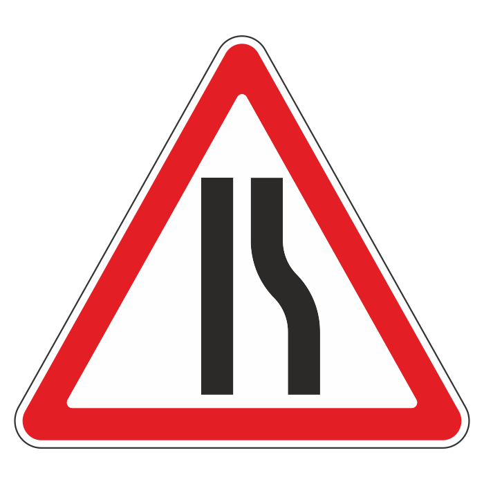 Дорожный знак 1.20.2 «Сужение дороги» (металл 0,8 мм, IV типоразмер: сторона 1500 мм, С/О пленка: тип Б высокоинтенсивная) в Ижевске купить