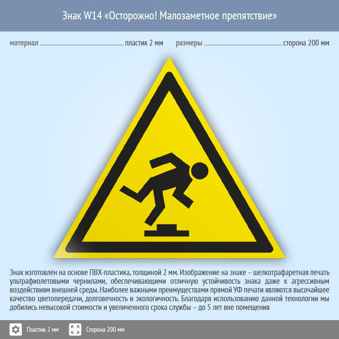 Знак W14 «Осторожно! малозаметное препятствие» (пластик, сторона 200 мм) в Ижевске купить
