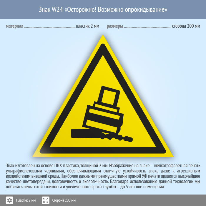 Знак W24 «Осторожно! возможно опрокидывание» (пластик, сторона 200 мм) в Ижевске купить