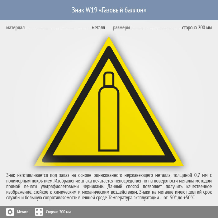 Знак W19 «Газовый баллон» (металл, сторона 200 мм) в Ижевске купить