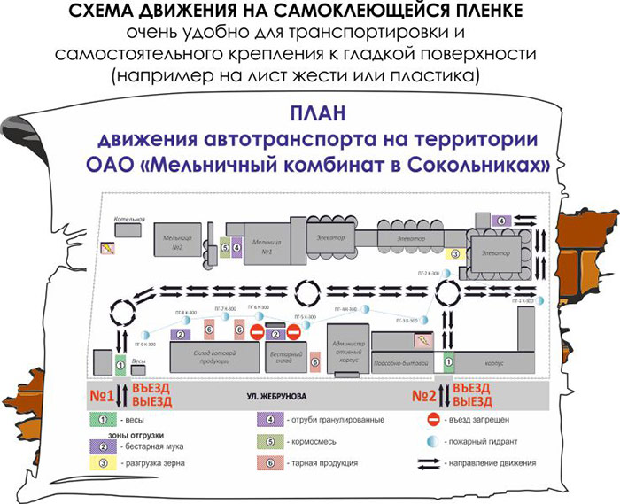 Схема движения автотранспорта (1500х1000 мм, самоклеящаяся плёнка) в Ижевске купить