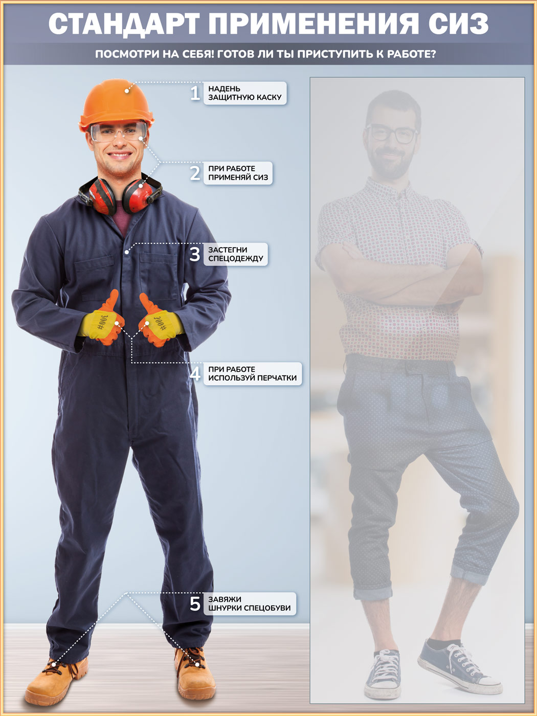 Стенд для демонстрации применения СИЗ с зеркалом, 1500х2000 мм в золотом багете (СПС-01-З) в Ижевске купить